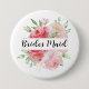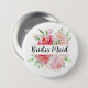 Knappen anpassningsbar har ett monogram, en elegant boho stil, blommigt med vackra vattenfärgblommor i rosa ros och grön. Palett med rosa och orange. Anpassa med en första namn eller brider som är gjord i namn.