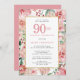 Rosa ros och Hydrangea Blommigt 90:e födelsedag Inbjudningar