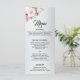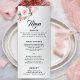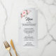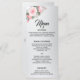 En mycket chic och elegant silver bröllop-meny (eller för någon annan viktig händelse för den delen) som innehåller ett vackert gäng rosa ros i hörnet av kortets framsida. Det finns en andra rosa ros-bukett på baksidan. Allt på en sofistikerad, klassad metallisk silver-utseende.