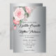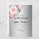 En underbar inbjudan till rosa blommigt och silver bröllop, med en bukett av vackert rosa ros i det övre lämnat handhörnet, på en bas av metall silver. Alla detaljer kan enkelt personlig till kostym genom att klicka på länken Anpassa den här mallen ovan. Baksidan av inbjudan har samma bakgrund i silver, med rosa ros bouquet i mitten.