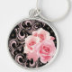 Rosa ros och Swirls Rund Silverfärgad Nyckelring