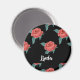 Rosa ros på svart magnet