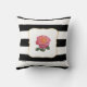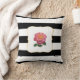 Elegant rosa ros på svart och vit randig kastkudde. En vacker ros för att vårda din ande!