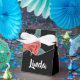 Rosa ros på svart presentaskar
