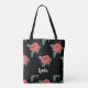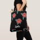 Rosa ros på svart tygkasse