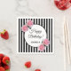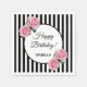 Rosa ros på svartvit rand Grattis på födelsedagen Pappersservett