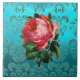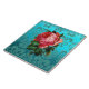ROSA ROS PÅ TEALBLÅ DAMASKERAD Blommig Keramisk Pl Kakelplatta