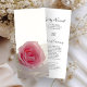 Ge dina gäster i bröllop om tidslinjen och ordningen för er ceremoni i party giftermål i klassträdgården med söt personlig Rosa ros om vitt Bröllopsprogram. Det här bröllopsprogrammet med anpassningsbar av elegant innehåller ett blommigt foto av en blommar av blomman från rosa ros med en vit möhippa-slöja.