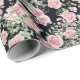 Söt rosa ros och peonblommor med svart bakgrund skapar ett blommönster för elegant på denna gåva som omsluter papper. Fira vilken tillfälle som helst med den här eleganten.