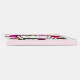 En gäst i bröllop bok med en blommigt bukett bestående av poppies för rosa av ljust rosa ro och mörk med många löv av lush grönt. Ett ram överst för att placera personligen i. Bakgrunden är en mjuk pastelliserad rosa mönster.