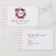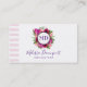 Professionell och elegant affärskort med ditt monogram brev. Designad med en blommigt bouquet som består av poppies för rosa av ljust rosa ro och mörk med många löv av lush grönt. En cirkelformad ram överst för att placera anpassningsbarnas monogrambrev inuti. En pastel rosa anc vit stripe mönster längs den lämnat sidan gräns.