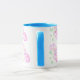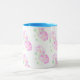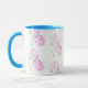 En söt vit mugg med pulverblått läppar och handtag, täckt i rosa ros, från en vattenfärgsmålning av Judy Adamson. Matchande gratulationskort finns också tillgängliga.