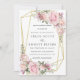 Mjukt rosa ros dekorerar ett tunt guld-geometriskt ram. Löv för delikat grönt läggs till i blommigten för vattenfärg arrangemangt. En pastellfärgad rosa-vattenfärg tvättar svepningar på baksidan. Den här rosa blommigtens bröllopsinbjudan är en del av sommarsamlingen Romantik. Den innehåller många DIY bröllop-mallar som gör att du enkelt kan skapa ditt kontorsmaterial och anpassa din ceremoni och mottagning.