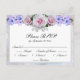 Traditionell bröllops-RSVP med en silver bokeh-bakgrund och accentuerad med en rosa ros-blomsterarrangemang. Den har en underbart subtil, vintage-känsla, perfekt för bruden som söker en uppdaterad viktoriansk look.
