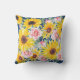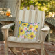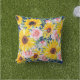 Cute och snyggt boho-stil-gult solblommor och rosa ros på marin blå dekoratorkudde för porch eller patiosmöbler. Det här är en vacker vår- eller sommartid som gör att du kan lägga till en roligt av färg till dina utomhus. Den här utskriften kan även köpas för dina möbler inomhus.