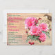 Fin blommigt födelsedagsfest inbjudan med rosa ros, träskivor och en fågel. Vågrät, 5 x 7 platta kort har rosa och grönt anpassningsbar, justerat till lämnat. Garden ro och fågel på en gren-bild dekorerar med ett sommartema. Kommer med vita kuvert.