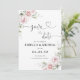 Rosa ros sparar datumkortet. Den här snyggten och eleganten Inbjudningskort för möhippan har en strålande, handmålad vattenfärgsfärgad Blommigt i Rosa ros. Sök efter matchande objekt i Rosa ros Blommigt Collection.