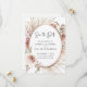 Boho Rosa Blommigt Torkat Handflatan Löv Ro Guld Metallic Ram Bröllop spara datum... Vår luxe boho-blommigt Spara datumkortet har en arrangemang av vackert rosa ros, eukalyptus och torkat handflatan löv runt ett faux ro-metallisk ovalal guld som ramar skapat för inbjudningstexten inom. Kortets baksida innehåller webbplatsinformation för bröllop och en grafikmall för QR-kod som du kan ersätta med en egen (eller ta bort). All exempeltext på båda sidor av kortet (förutom textbilden Spara datum) kan enkelt revideras med egna uppgifter om anpassningsmallen.