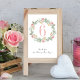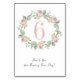 Ett kort från bröllop bord som visar en vattenfärgsutandning av blommigt med gult och rosa ros. Tack för att dela vår dag i ett skriptteckensnitt längs grund på kortet.