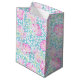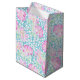 En söt Medium Gift Bag, med mönster av klart rosa ros på himlar blå bakgrund, prickad med små vita fjärilar. Inom ramen för uppsamlingen "sommardagar" i Posh & Painterly kan mönster anpassas så att det passar alla gift Bag.