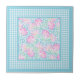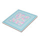 En keramisk söt, med mönster i rosa ros på himlar blå bakgrund, prickad med vita fjärilar i gräns i Himlar Blue and White Check Gingham. Lägg till en ram av trä för att göra en nyttig och dekorativ trivet!