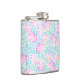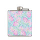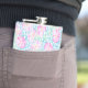 En söt Hip-kolv, med mönster av ljusa rosa ros på himlar blå bakgrund, prickad med små vita fjärilar. Inom ramen för uppsamlingen "sommardagar" Posh & Painterly kan denna mönster anpassas till vilken som helst Hip-kolv.