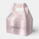 Girly Glam Rouge Rose Guld Glitter Metallisk Monogram Namn Script Anpassad Personlig Favoritlåda. Dessa mönster har ditt förnamn i en vacker handskriven svansfont signaturtypografi på rosa rose guld falsk metallisk folie med glam glitter glitterkant. Dessa stilrena feminina presentlådor är bra för att dela ut presenter, gästpresenter och godsaker under en kommande födelsedagsfest, 16-årsdag, baby shower, BBQ, bröllopsreception, möhippa, bröllopsfest, årsdag och mer.
