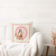 Rosasnöre omger henne med vitsnörebakgrund på kudde.