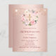 En elegant flickig roséguld, rosa gradientbakgrund, dekorerad med akvarellmålade rosa och vita blommor i en krans, ett gyllene kors och falskt glitter. Personifiera och lägg till ett namn och detaljer.