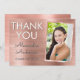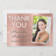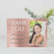 Roséguld Falsk Rostfritt Stål Metallisk Examen Tack Kort. Detta 2018 Rosa Rosa Flickaktig Examen Tack Kort är perfekt för den examen som älskar roséguld och glans! Detta Roséguld Tack Kort kan anpassas för att inkludera ditt namn, gymnasieskola eller högskola, examensår och foto.