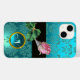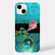 Elegant coola vintage stil blommigt med vackra röda rosa ros med diamanter.Färgfulla vibranta dammmönster, Elegant, klass och unik design med en brignt teal aqua blue 3D gem-sten av Bulgan Lumini (c).Enkel att anpassa med initialer