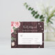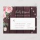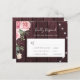 Rustik landsby elegant bröllops-svarskort med måltidsalternativ med en bukett av rosa akvarellrosor med gröna blad och löv samt en klassisk handskriven kalligrafiskrift på en mörk burgunderfärgad lada träbakgrund med strängljus.+++++++++++++ Matchande inbjudan och brevpapper finns tillgängliga i kollektionen. ++++++++++ Vänligen läs detta innan du köper! Detta är ett budgetvänligt kort som trycks på ett pappersark (varje ark har ett kort). ++++ För bästa pris-kvalitet råder vi till att välja Semi-Gloss-papperstypen (den är tillräckligt tjock för att användas till brevpapper) ++++ Om du behöver kuvert, välj KUVERTERALTERNATIV. +++ Dubbelkontrollera all information och stavning av din text eftersom du kommer att få exakt vad du ser - ingen annan kommer att kontrollera något innan utskrift. ++++ Detta kort är designat för storlek 11,4 cm x 14,2 cm. Om du väljer en annan storlek på kortet och texten ham