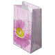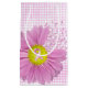 Rosa rosett band för medvetenhet om bröstcancer med en rosa daisy på vit och rosa gingham.