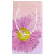 Rosa rosett band för medvetenhet om bröstcancer med en rosa daisy på prickbakgrunden.