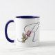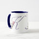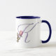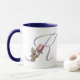 Personlig mugg med en skillnad - en elegant monogram "K" som texturerades i vätskemetall och dekorerades med ett delikat rosa land, steg.