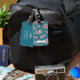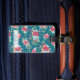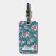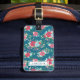 Mörk krickabagagemärkre med ett mönster av rosa ros, blåa blommor och den körsbärsröda blommar. Personifiera med ditt namn på täcka, och namnge och tilltala på baksidaen.