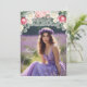 Uttryck din tacksamhet i tidlös stil med detta personliga tackkort för trädgårdsbröllopsfest. Perfekt för en Rosor Bröllopsfest, har denna eleganta design vintage-rosa blommor och mjuka rosa och vita vintage rosor arrangerade i en graciös båge, varsamt sammanflätade med salvia gröna blad och frodig grönska. Den romantiska blomsterkonsten kompletteras av elegant typografi och kalligrafiska typsnitt för en sofistikerad, feminin touch. Baksidan av kortet har en krispig vit bakgrund prydd med en enda delikat blomma, vilket håller utseendet chic och raffinerat. Personifiera ditt kort genom att lägga till ett foto av den blivande bruden för en verkligt meningsfullt minne. Perfekt för en bröllopsfest, lunch eller picknick, är denna blom