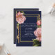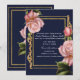 Rosa rosor Marinblå & Guld Modern Bröllopsfest Inbjudningar