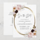 Ljust rosa rosor Guld Metallisk Bröllop Spara datum Inbjudan... Vår lyxiga blomsterinbjudan för att spara datum har buketter av vackra ljust rosa rosor böjda runt en falsk guldmetallisk oval ram som skapar en elegant kant runt inbjudantexten. Baksidan av kortet innehåller din returadress, information om bröllopswebbplatsen och en QR-kod grafisk mall som du kan ersätta med din egen (eller ta bort). All exempeltext (förutom Spara datum-textgrafik) på båda sidor av kortet kan enkelt revideras med dina egna detaljer i personaliseringsmallen.