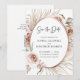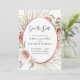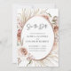 Boho Blush Rosa Blommor Torkade Palmblad Rose Guld Metallisk Ram Bröllop Spara Datum... Vårt lyxiga boho blommiga Spara Datum-kort har en arrangemang av vackra blush rosa rosor, eukalyptus och torkade palmblad runt en falsk rose gold metallisk oval ram som skapar en elegant kant för inbjudningstexten inom. Baksidan av kortet innehåller er webbplatsinformation för bröllopet och en QR-kod grafisk mall som ni kan ersätta med er egen (eller ta bort). All exempeltext på båda sidor av kortet (förutom Spara Datum-textgrafik) kan enkelt revideras med era egna detaljer i personaliseringsmallen.