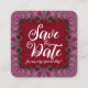 Rosa & rött Snöre-cute Spara datumkort Fyrkantigt Visitkort