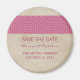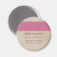 Elegant och chic Rustic Damask Spara datum magneter med en vintage med en texturerad papper utseendebakgrund och ett blomstrande dammmönster gräns i magenta. Enkel att anpassa, lägg bara till information om bröllop. Klicka på Anpassa om du vill söka efter fler anpassningsalternativ.