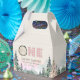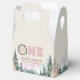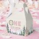 Den här favoritrutan har vattenfärgshögar och skogsmark. "En" är en träcirkel och rosa plaid. Det är perfekten att tacka gästerna för att de kommit till din lilla party.