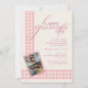Fira vänskap som formar oss med detta söta, snygga rosa rutmönstrade Galentine's-dags inbjudningskort med klassisk elegant typografi. Önska en riktigt glad Galentine's-dag till dem som ger glädje, kärlek och tillfredsställelse i ditt liv. Personifiera enkelt med dina detaljer (meddelande, datum, plats, RSVP-detaljer och ett fotografi) och gläd dig åt hjärtliga och roliga fester i det bästa sällskapet
