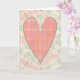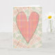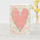 Min originala konst med en grafisk, avlång hjärta som är en sammanslagning av vintage-mönster som återskapats i en retro-rutig stil i rosa nyanser. Hjärtat är placerat på en abstrakt pil-mönstrad bakgrund i bleka toner av persikorosa och salvia grön. Insidan lyder "Jag hoppas din dag är full av kärlek! Glad Alla Hjärtans Dag!". Detta kort är ett trevligt sätt att uttrycka sin kärlek till någon!
