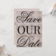 Inbjudan med rosa rutigt mönster och Spara datumet i skrivstil