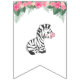 Fira din dotters första födelsedag med den här vackra safari-födelseattinnet. Söt baby djur parad med tropiska löv, rosa djungelblommor och rosa och grått är perfekt för din dotters födelsedag.