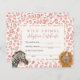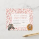Kort för godkännande av födelsedagsfest för cute safari-temaflicka, med illustration av en lejon och zebra med blomma och party hatt. Bakgrunden är en rosa leopard mönster. Ge ut mjukisdjuren under party som partiförmån tillsammans med detta intyg!