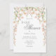 Rosa Blommigt Wildblommor på ren vit elegant söt inbjudningskort för möhippan med sage grönt accent färg.