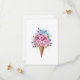 Söt våffelkon med färska, rosa japanska blommar av körsbär på vit bakgrund med blå vattenfärgstryck. Rosa japansk körsbär.